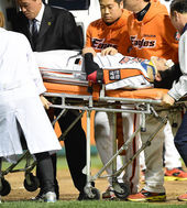 2014.10.13 21: 22한화 장운호,'서동환 공에 머리 맞고 앰뷸런스 이송'
