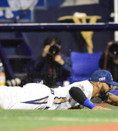 2014.10.14 20: 51테임즈,'몸 날려 잡아내는 김상수의 번트 타구'