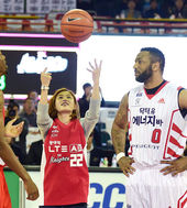 2014.10.14 21: 25AG펜싱 금메달리스트 김지연,'SK-오리온스 경기 시구'