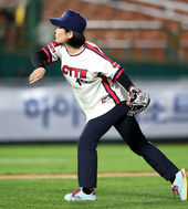 2014.10.15 18: 52사직구장 시구하는 김희정 여성가족부 장관