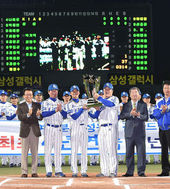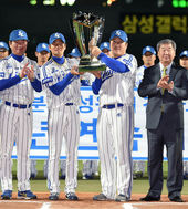 2014.10.16 18: 23삼성,'정규 시즌 4년 연속 우승 트로피 들어올립니다'