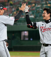 2014.10.17 21: 35신재웅-이병규,'4강 확정에 싱글벙글'