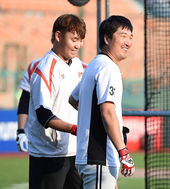 2014.10.17 17: 14이진영,'장성우 헬멧이 더 커요'