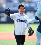 2014.10.19 15: 21준PO 1차전 시구하는 안상수 창원시장