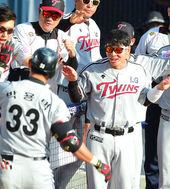 2014.10.19 15: 37현재윤,'솔로포 박용택 향한 새(?) 세리머니'