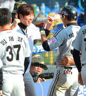 2014.10.19 15: 19류제국,'LG 수비 활약에 미소가 방긋'