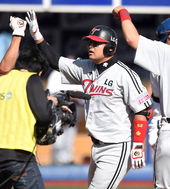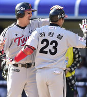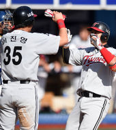 2014.10.19 14: 30이진영,'최경철 스리런에 함박 웃음'