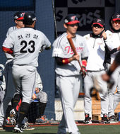 2014.10.19 14: 32양상문 감독,'최경철 최고야!'