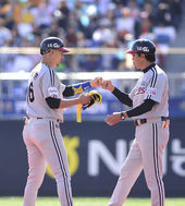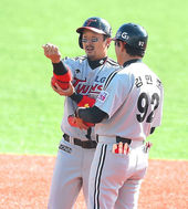 2014.10.19 14: 18정성훈-박용택,'날도 더워서 빨리 들어왔어'