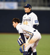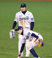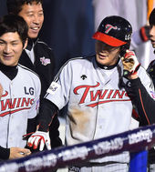 2014.10.22 22: 11득점 올리고 놀림 받는 문선재,'2아웃 아니였어요?'