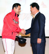 2014.10.23 14: 39박진만,'김용희 신임감독과 함께'