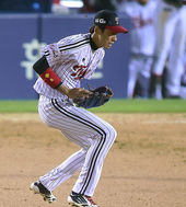 2014.10.24 21: 21김용의,'글러브에서 공이 안빠지네'