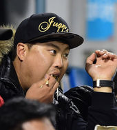 2014.10.24 19: 53잠실야구장서 먹방 선보이는 류현진