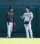 2014.10.24 16: 17동료들의 훈련 바라보는 한신 오승환