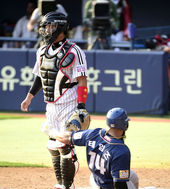 2014.10.25 16: 28준PO 4차전,'런다운 걸린 이호준'