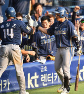 2014.10.25 16: 29준PO 4차전,'연속득점에 환호하는 LG선수들'