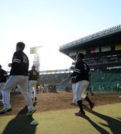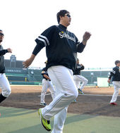 2014.10.25 16: 21고시엔구장에서 몸푸는 소프트뱅크