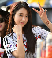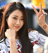 2014.10.25 15: 23나인뮤지스-경리,'LG 트윈스 응원타투를 하고 브이!'