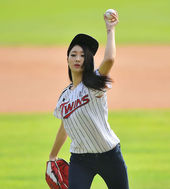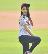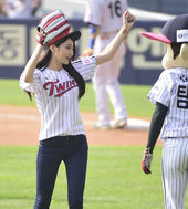 2014.10.25 14: 05경리,'LG 승리 요정의 시구'