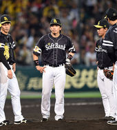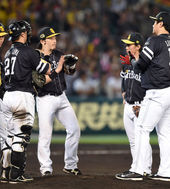 2014.10.26 20: 07[JS사진]마운드에 모인 소프트뱅크,'동점은 안돼'