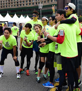 '나이키 위 런' 레이스 앞둔 스타들,'기념사진 찰칵'