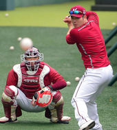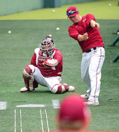 2014.10.26 14: 09박병호,'다승왕 밴 헤켄 시뮬레이션 피칭 도우미'