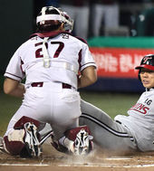 2014.10.27 19: 49선행주자 추월 아웃되는 이병규,'마음이 급했나'