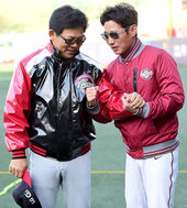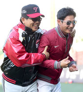 2014.10.27 16: 57포옹하며 인사 나누는 이병규-최만호