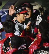2014.10.28 19: 00[JS사진]선제 적시타 우치카와,'3차전도 우리가 가져간다'