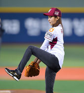 2014.10.28 18: 34넥센 2군 감독의 딸 유이,'PO 2차전 시구'