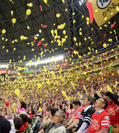 2014.10.28 21: 36[JS사진]승리를 기원하며 풍선을 날리는 소프트뱅크 팬들