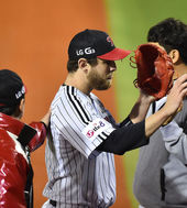 2014.10.30 19: 39오재영 호투에 박수치는 염경엽 감독