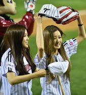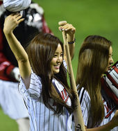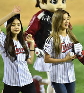 2014.10.30 18: 38손나은-윤보미,'에이핑크가 PO3차전 시타시구 왔어요'