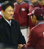 2014.10.31 22: 34KS 진출한 염경엽 감독 격려하는 넥센 이장석 대표