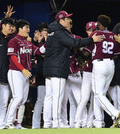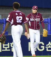 2014.10.31 21: 07소사,'마운드 내려가며 박동원과 하이파이브'