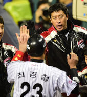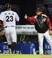 2014.10.31 19: 29최경철 향해 엄지 치켜세우는 양상문 감독