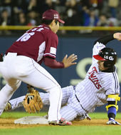 2014.10.31 19: 47박동원, '헤드퍼스트 슬라이딩으로 1루 세이프'