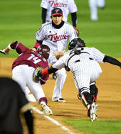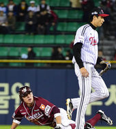 2014.10.31 18: 40서건창,'최경철의 위협적인 태그에 아웃'