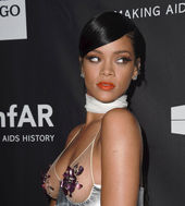 리한나,'가슴을 달랑 꽃 하나로 가리고'