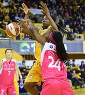 2014.11.01 15: 12스트릭렌-하지스,'양보없는 외인 WKBL 개막전 맞대결'