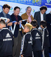 2014.11.01 13: 35이운재-안정환,'축구 꿈나무들에게 걸어주는 메달'