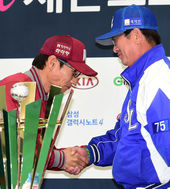 2014.11.03 15: 50악수 나누는 염경엽 감독과 류중일 감독