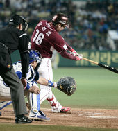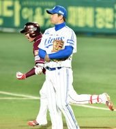 2014.11.04 21: 12한국시리즈 1차전, 날개 편 강정호 바라보는 채태인,'씁쓸하네'