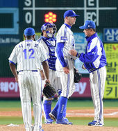2014.11.04 20: 41한국시리즈 1차전, 마운드 내려가는 삼성 선발 밴덴헐크