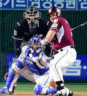 2014.11.04 20: 48한국시리즈 1차전, 차우찬 공에 팔뚝 맞는 넥센 로티노