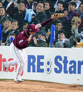 2014.11.04 20: 36한국시리즈 1차전, 김민성,'아! 아슬아슬하게 놓쳤네'