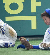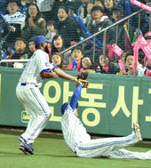 2014.11.05 19: 06채태인,'호수비에 머리가 어질'