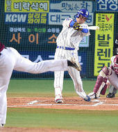 2014.11.05 18: 50한국시리즈 2차전, 채태인,'이제 방망이가 돌아가네'