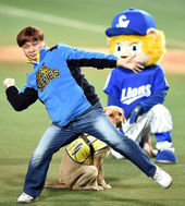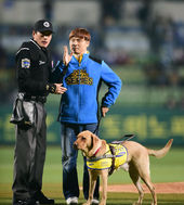 시각장애인 허경호 씨, 안내견과 2차전 시구