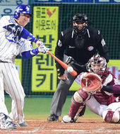류중일-이승엽,'나바로! 3안타 1홈런 3득점 정말 대단해'